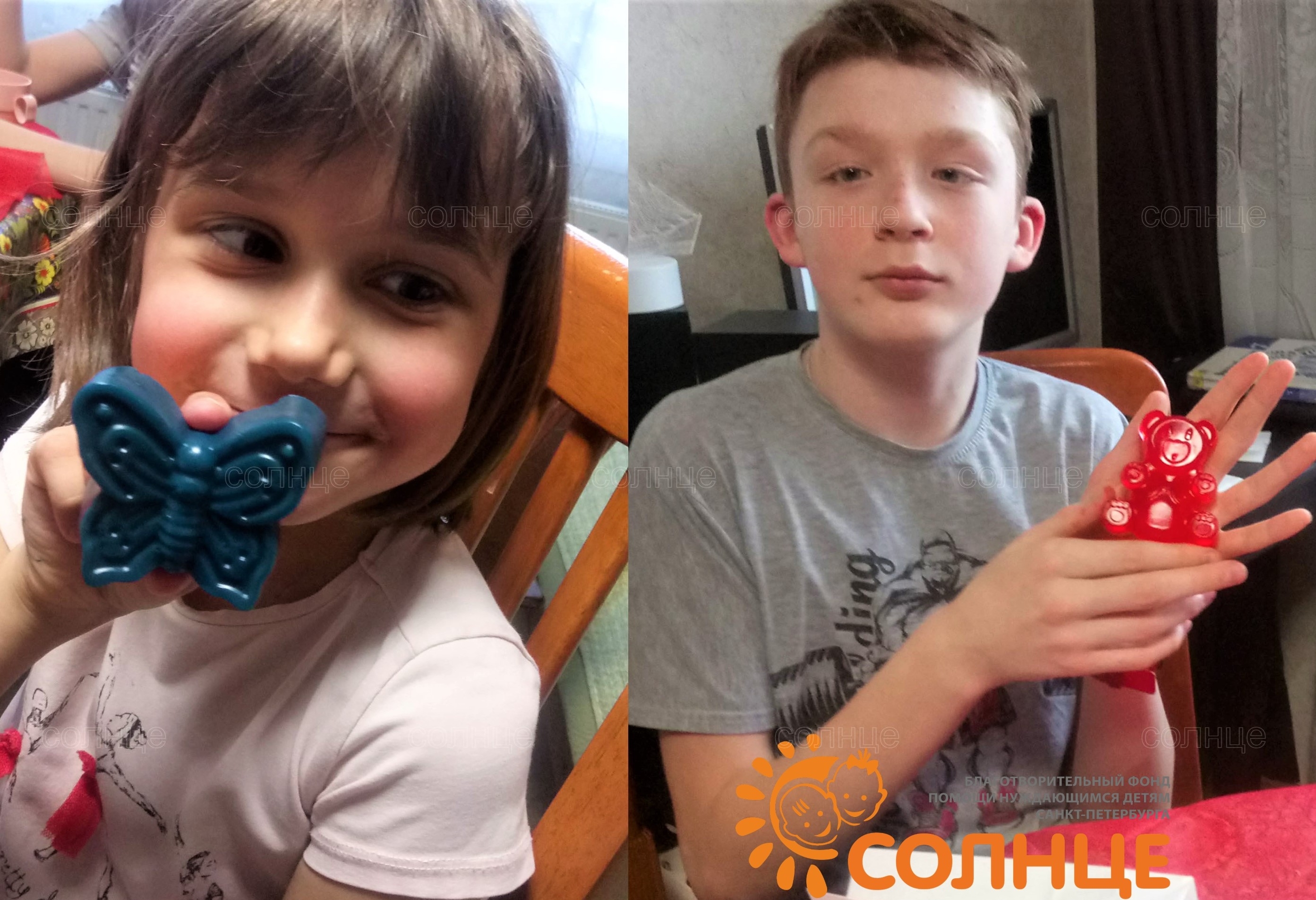 Наши волонтеры рассказали, что благодаря химии мы узнаем, каким образом различные вещества влияют на процессы жизнедеятельности организма и на саму жизнь человека. Ребята задавали вопросы: почему соль соленая? почему мыло мылиться? как делают лекарства? почему мы вдыхаем кислород, а выдыхаем углекислый газ? Конечно, каждому захотелось попробовать себя в роли химика-лаборанта: осторожно выливаем в форму, добавляем краситель, отдушку, размешиваем, внимательно наблюдаем. Экспериментируем… У каждого из ребят получились разные формы цветного душистого мыла.