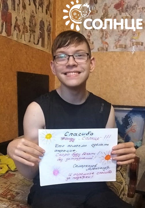 Май 2021: Саша перенес операцию. Спасибо всем, кто откликнулся и жертвовал деньги. Мама Саши прислала сообщение: "Операция позади. Саша уже дома. Вижу,что ему еще тяжело, но говорит, что все хорошо. Настроение хорошее, отсыпается, читает. Пока вставать нельзя, но уже можно сидеть. Спасибо всем огромное и низкий поклон за помощь!"