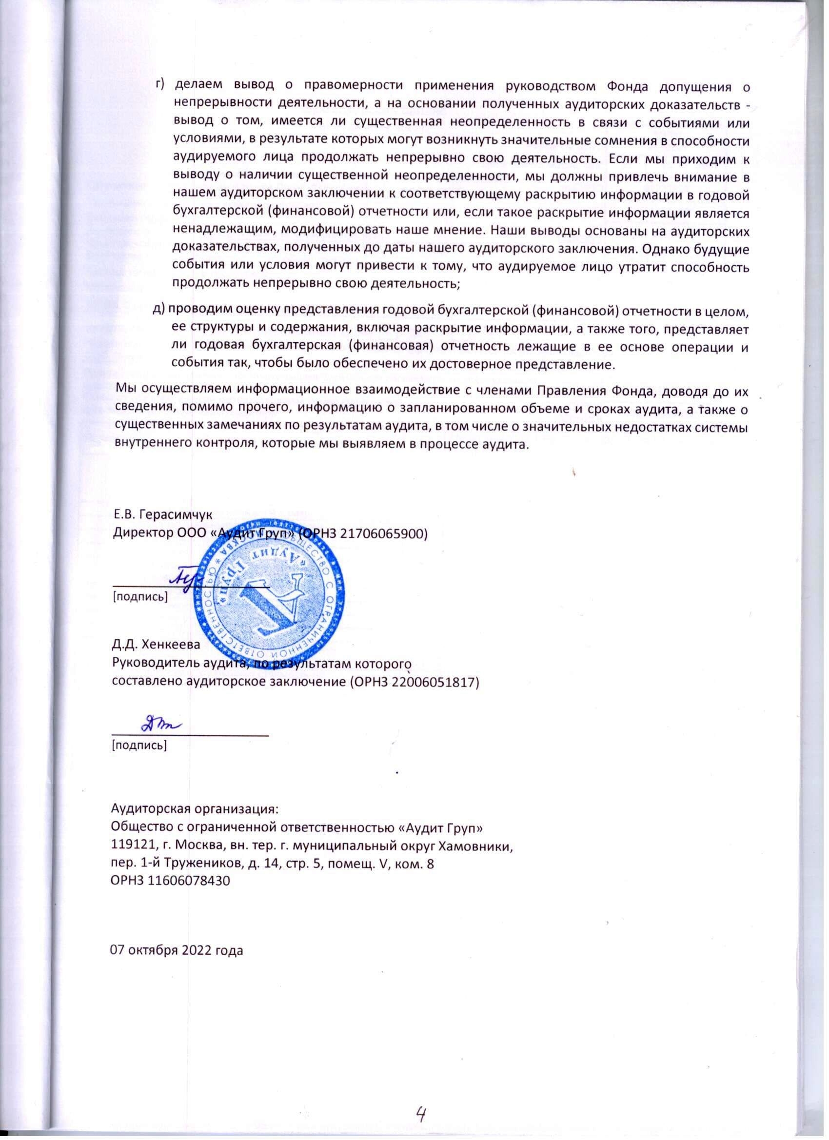 Аудиторское заключение по бухгалтерской отчетности за 2021 год