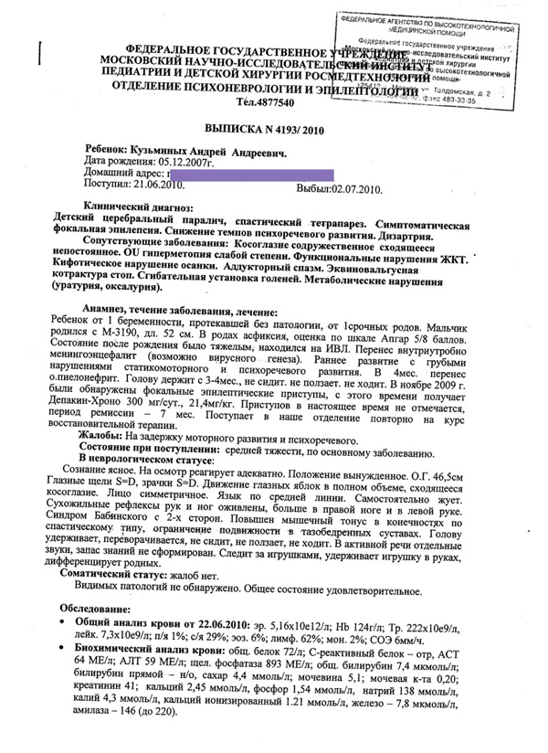 Маленького Андрюшу с нетерпением ждали. Он родился, как и большинство детей, в срок. Но сразу после рождения состояние мальчика ухудшилось. И никто так и не дал ответа, что это было – гипоксия ли в родах, (инфекция, которую пытались привязать - менингоэцифалит не подтвердилась, после 4 исследований), ошибка ли это врачей. Теперь судить сложно, да и будем верить, что всем воздастся по заслугам. Важно одно – полностью здоровье малышу не вернется, перенесенное им страдание не сотрется. Вся жизнь Андрюши будет борьбой. Но мы с вами можем помочь этому маленькому мальчику бороться.