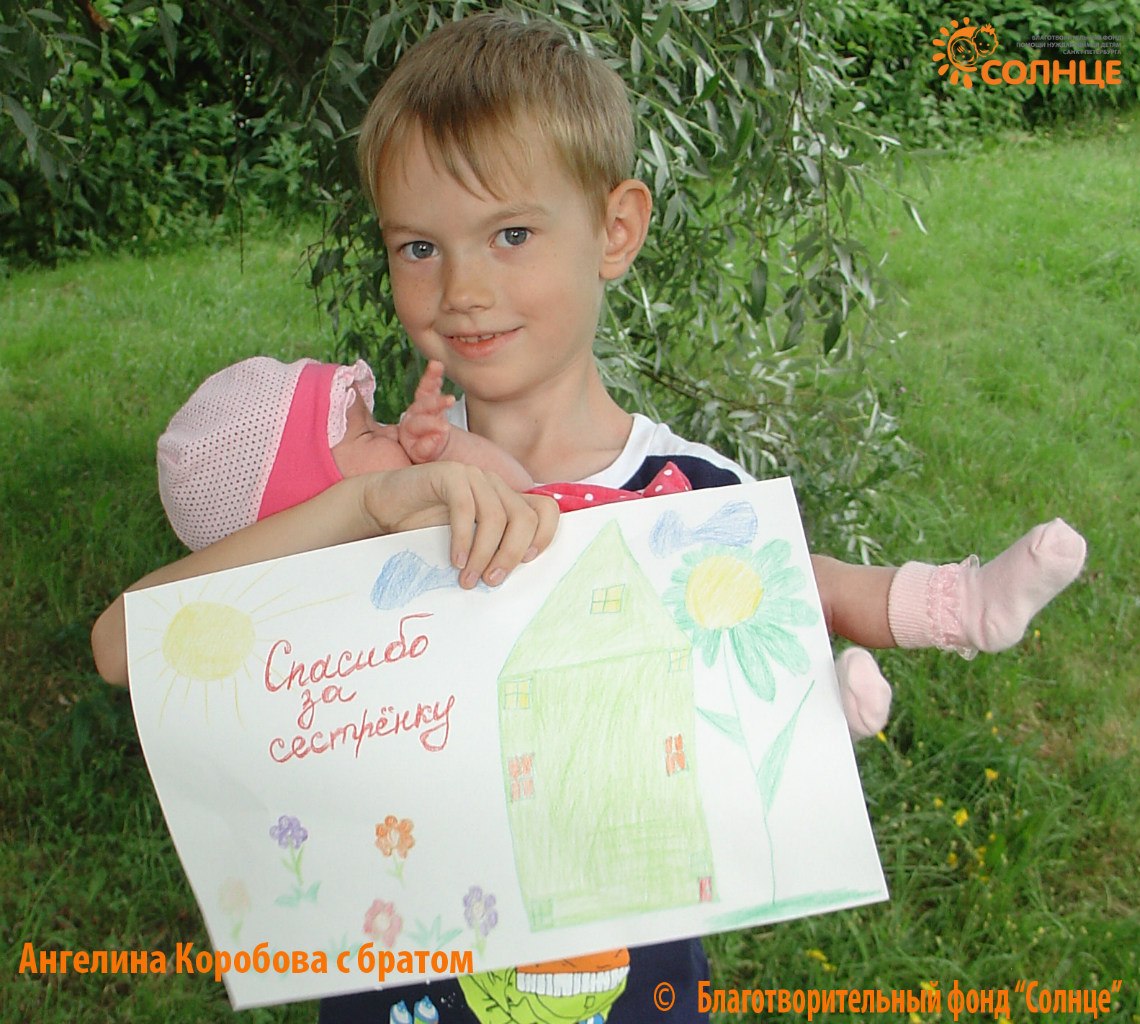 Ангелина уже дома, с семьей, и ее мама прислала нам фотографию малышки со старшим братом!